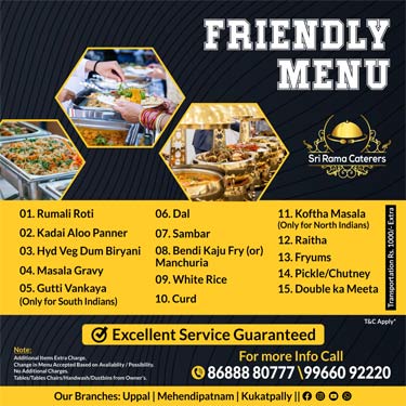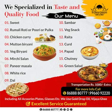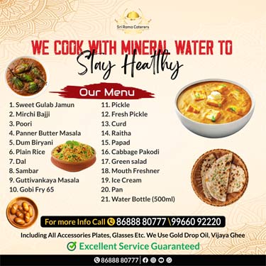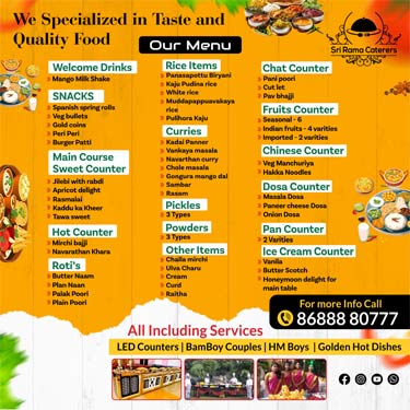 Sri Rama Caterers truly made our wedding day special with their mouth-watering dishes and excellent hospitality.